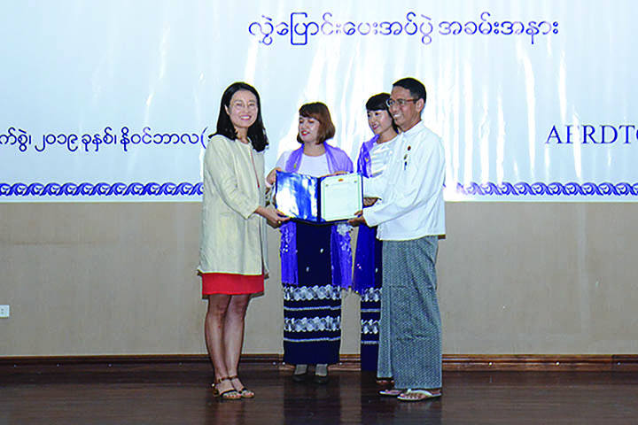 The donation ceremony was held at the Agriculture Extension and Rural Development Training Center in Zeyathiri Township, Nay Pyi Taw, yesterday.