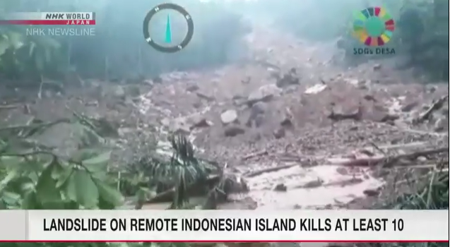 The country's disaster mitigation agency said the slide occurred Monday morning on Serasan Island, part of the Natuna archipelago in the South China Sea.