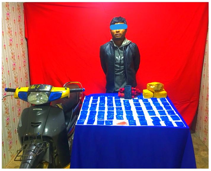 Acting on a tip-off, a combined team comprising policemen from Taungyi Anti-drugs Squad-25 led by Police Inspector Soe Naing and police members from Kalaw Myoma Police station led by Police Inspector San Lwin together with witnesses intercepted a motorbike driven by Khu Soe Win on Kalaw-Thazi Roads near Yeya Village, Kalaw Township in Shan State(South) yesterday evening and seized 13000 stimulant tablets weighing 1300 grams worth K 13.0 million, a mobile phone and a motorcycle from him.