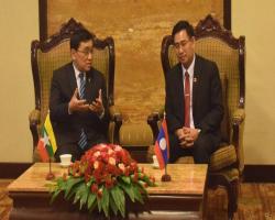 Union Minister for Social Welfare, Relief and Resettlement Dr. Win Myat Aye, who is currently in Vientiane, Lao PDR to attend the Eleventh ASEAN Ministerial Meeting on Youth (AMMY XI) and the Seventh ASEAN Ministerial Meeting on Youth (7th AMMY + 3), met with the Secretary General of Lao Youth Union and party at the Lao Plaza Hotel yesterday.