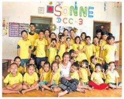 Volunteer Alice Le Roux at the Sonne International Day Care Center in South Dagon, Yangon