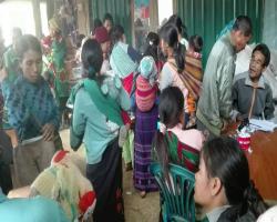 Department of Social Welfare under the Ministry of Social Welfare, Relief and Resettlement provided cash aid to pregnant women and children below two years old at the office of Ward Administration Department in Lai Len Pi, Mindat District, Chin State this morning.