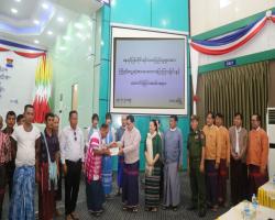A ceremony to welcome and to give aids to the Verified Myanmar nationals from Thailand was held at Zwekapin hall in Hpa-an, Kayin State yesterday.