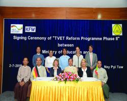 Department of Technical and Vocational Education-DTVE of Ministry of Education and German Development Bank (KfW) signed a financing agreement and other separate agreements on funding nearly euro 10 million on implementing “TVET Reform Programme Phase II” at the ministry in Nay Pyi Taw yesterday.