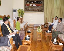 Union Minister U Thant Sin Maung receives KOICA representative Ms Lee Youn Soo
