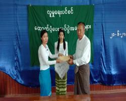 A ceremony to provide social pension to elderly citizens above 85 years of age was held in the meeting hall of General Administration Department in Minhla, Bago Region this morning.