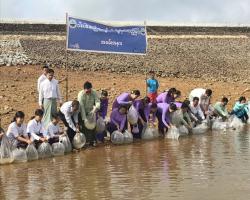 With the arrangrement of the Department of Fisheries, departmental personnel and social organizations released fingerlings into Warpah Dam and Don-tha-mi Creek in Thaton Township, Mon State this morning.