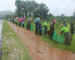 In commemoration of World Environment Day, collective tree planting took place in the compound of Win Sein monastery in Mudon Township in Mon state this morning.