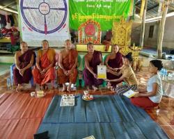 Local philanthropic groups donated cash assistance to internally displaced people at a temporary relief camp in Ponnagyun Township, Rakhine State this morning.