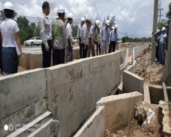 Union Minister for Construction U Han Zaw arrived at Bago River Bridge construction site in Yangon Region yesterday morning. In the briefing hall Department of Bridge Deputy Director General U Nay Aung Ye Myint, Chief Engineer U Kyaw Lin and an official from consultant company explained about bridge construction matters,