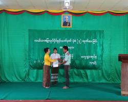 A ceremony to hand over a school building to Bonkyaw Monastic Education in Ngabutaw, Ayeyawady Region was held at the building this morning.