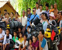 Two Myanmar- UK Motourlogue motorbikes visit Mann Oil Field in Minbu