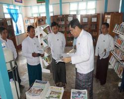 Ministry of Information (MoI) Deputy Minister U Aung Hla Tun inspects works conducted at public based Community Centre setup in Kayah State, Loikaw District Office and met with staff from Kayah State Office, Loikaw District, Kayah State television retransmission station and ethnic television channel yesterday afternoon.