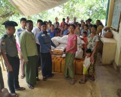 The staff from the Department of Disaster Management under the Ministry of Social Welfare, Relief and Resettlement provided relief supplies to the internally displaced people at Yan Aung Monastery in Maungtaw District, Buthidaung Township, Rakhine State this afternoon.