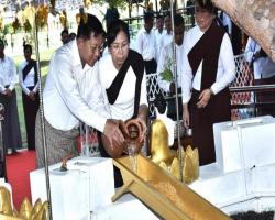 The Full Moon Day of Kason (Buddha Day) is of religious traditions for the Buddhists across the world. A ceremony to pour water at the Bo tree marking the Buddha Day was held at the Bo tree in the precinct of the Uppatasanti Pagoda in Nay Pyi Taw yesterday.