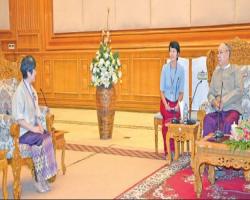 SPEAKER of the Amyotha Hlut-taw, Mahn Win Khaing Than, received a delegation led by Ms. Pauline Ng, the former Secre-tary General of Hong Kong’s Legislative Council Secretariat, at the Amyotha Hluttaw’s guest hall in Nay Pyi Taw yesterday.