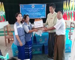 Officials from the Department of Disaster Management under the Ministry of Social Welfare, Relief and Resettlement donated humanitarian assistance to storm victims in Nattalin Township on 8 May.
