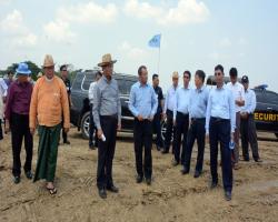 Natural Disaster Management Committee (NDMC) Chairman Vice President U Henry Van Thio accompanied by Ayeyawady Region Chief Minister U Hla Moe Aung, Deputy Ministers U Hla Kyaw and U Kyaw Myo and officials inspected the construction of Ayeyawady Hinthada Zalun Township portion of Thekon-Nyaing Aing Pan levee constructed with NDMC funds K 990.868 million yesterday.