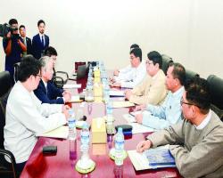 NATIONAL Reconciliation and Peace Centre (NRPC) representative group consisting of Peace Commission Deputy Chairman U Thein Zaw, Peace Commission Secretary Lt-Gen (Retired) Khin Zaw Oo, Peace Commission advisor U Hla Maung Shwe and Ministry of State Counsellor’s Office Director General U Zaw Htay met with a delegation led by Mr.