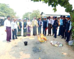 A ceremony to present cash assistance to family members of the deceased who were killed after a boat sank in the Chindwin River took place at Ngwetha Hall of the General Administration Department in Salingyi Township, Sagaing Region this morning.