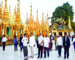 Sri Lankan FM Mr. Tilak Marapana, wife visit Shwedagon Pagoda