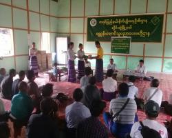 A ceremony to furnish agricultural items, purchased by Union funds, to farmers for flooded farmlands in Hlaingbwe Township, Kayin State was held at Shwe Gun Technical Center.