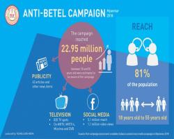 A mass media campaign to discourage betel quid chewing, launched in October, 2018 by the Ministry of Health and Sports