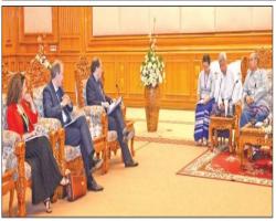 AMYOTHA Hluttaw Speaker Mahn Win Khaing Than received the EU Electoral Follow-up Mission-EFM led by Mr. Alexander Graf Lambsdorff, at the Amyotha Hluttaw in Nay Pyi Taw yesterday.
