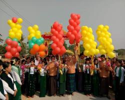 A ceremony to launch a new concrete road constructed by Rural Development Department with the fund allotted by regional government in the 2018 mini-fiscal year was held in front of the archwy in the Yepawkan village in Thongwa Township, Yangon region yesterday.