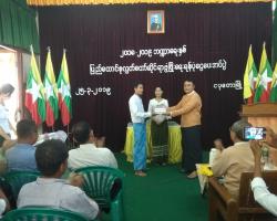 A ceremony to hand over Pyidaungsu Hluttaw development fund for 2018-2019 fiscal year, K 100 million, to village administrators and development contributory committees was held at the meeting hall of the Township General Administration Department in Ngapudaw Township, Ayeyawady Region this evening.