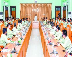 U MIN THU, the Union Minister for the Office of the Union Government, met with staff of the Kayin State General Administration Department at the State GAD office in Hpa-an, Kayin State, yesterday.