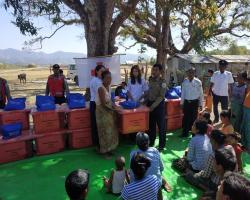 Representatives from the Myanmar Red Cross Society (MRCS) donated relief supplies to the displaced people in MraukU Township, Rakhine State yesterday.