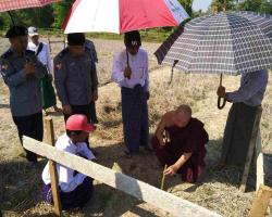 Presiding Sayadaw of Taikgyi monastery in Pathein and Police Major Khin Naing drove stakes to construct a new facility.