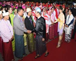 President U Win Myint and First Lady Daw Cho Cho hosted a reception and dinner to commemorate the 72nd Anniversary Union Day in the square in front of Nay Pyi Taw City Hall yesterday evening.
