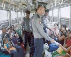 Police members from the Railway Police Unit of Yangon Region led by Police Sub-inspector Hsint launched a public awareness campaign onboard the circular train yesterday.