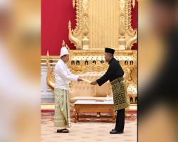 ACTING President of the Republic of the Union of Myanmar and State Security and Peace Commission Chairman Senior General Min Aung Hlaing accepts Credentials of the Pakistani Ambassador.