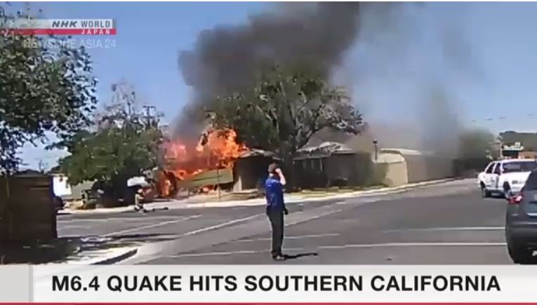 They say the quake broke water pipes and cracked building walls in suburbs of Los Angeles.