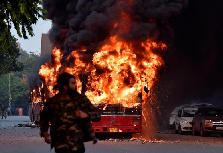 At least five people were killed after a bus travelling to India's southern city of Bengaluru caught fire on a highway in the early hours of Wednesday.