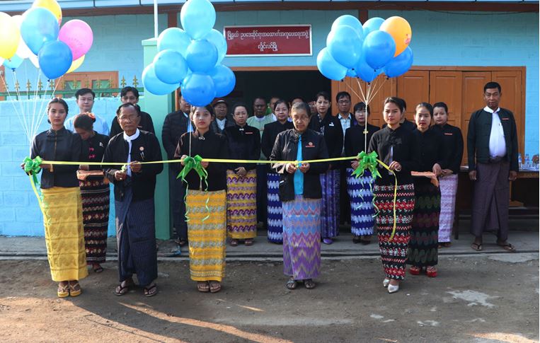 First of all, U Ye Myint, member of the state Ligal Aid Board and Daw Nu Nu, Chairperson of the township Legal Aid Board cut a ceremonial ribbon to formally open the office.
