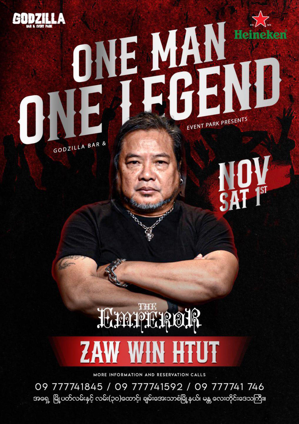 WELL-KNOWN rock singer Zaw Win Press launch held for new Myanmar film Htut will hold a live music show titled One Man, One Legend Show at the Godzilla Bar in Chanayethazan Township, Mandalay, starting at 7 pm on 1 November, according to the singer.