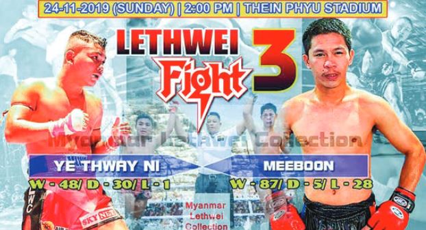 LETHWEI Fight 3 will be held at Thein Phyu Indoor Stadium in Yangon on 24 November at 2 pm.