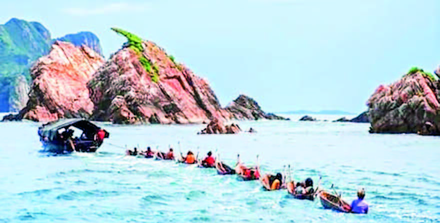 Offshore squid fishing runs from October to the first week of May. During the late waning days before the new moon, the sea is crowded with the trawlers with light decorations like floating candles during the Thadingyut Festival. Salon people sell squid inshore for a living. — Thitsa (MNA)/KK