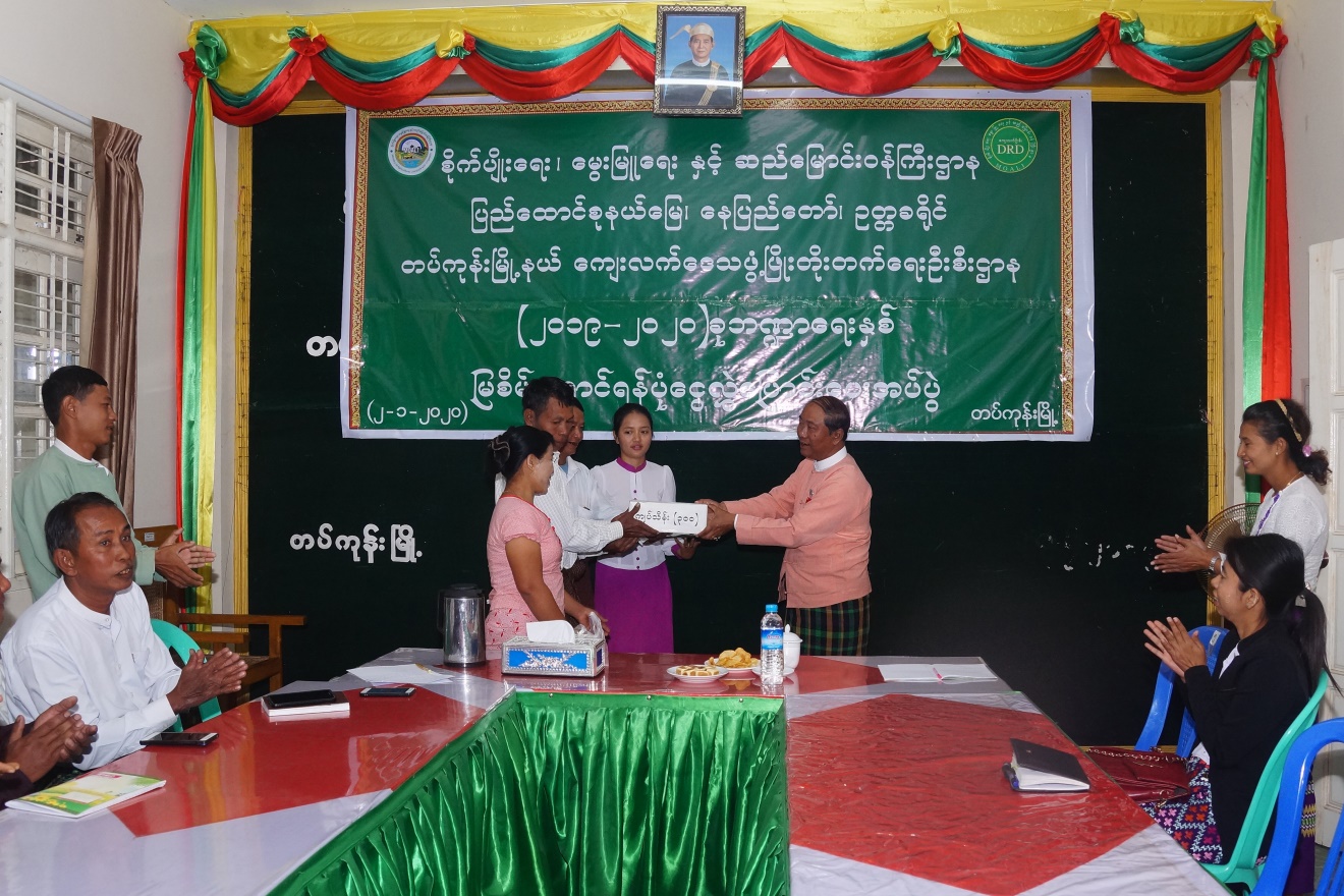 At the event, the Pyithu Hluttaw Representative U Kyaw Tint delivered an opening speech. Then, an official from the township Department of Rural Development clarified the purpose of the project and explained rules and procedures of the project to be followed by rural people.