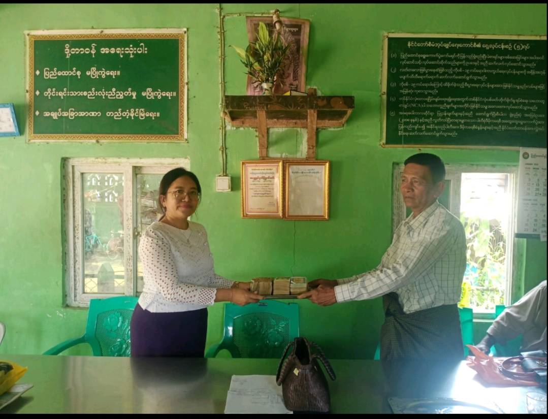 First, an official from the Township Department clarified the purpose of loans disbursement. Then, project manager and staff also clarified the rules and regulations to be abided by and the officials handed over loans to the members of Tawlan village emerald green project (oil crops).