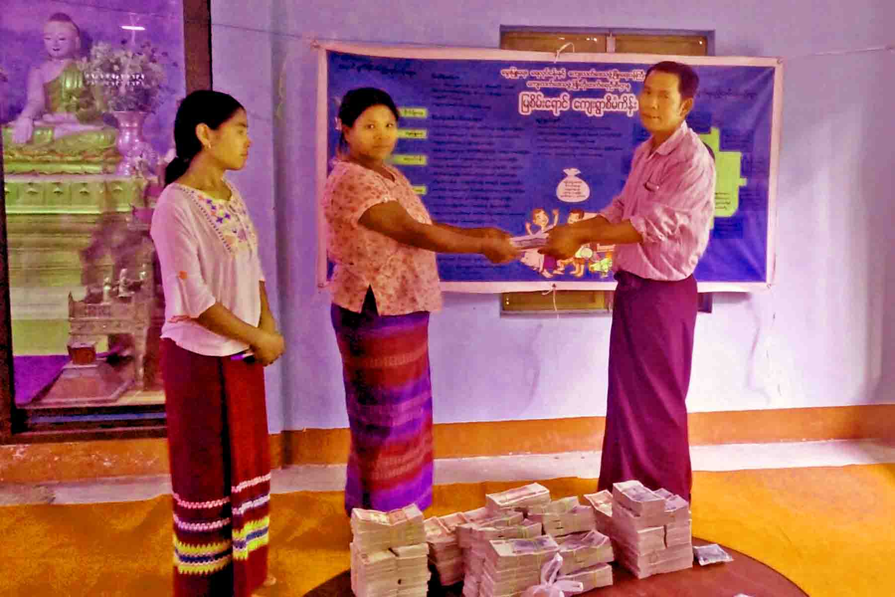 With the intention of increasing family’s income and upgrading socioeconomic status of rural people, Pwintbyu Township Rural Development Department disbursed loans of Emerald Green Project to rural people in Latpanchi village, Pwintbyu Township this morning.