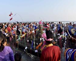 Rakhine religious associations and youths celebrated the traditional sand pagoda festival by building sand replicas of pagodas yesterday, the Full Moon Day of Tabaung, on the Ngapali beach in Thandwe.