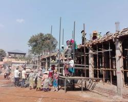 A two-storey school structure is being built in a basic education high school in Mongnai Township, Shan State.