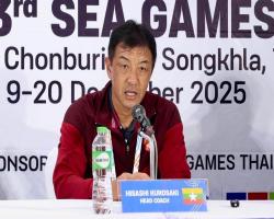 Local Sports Local Sports MFF parts ways with U22 coach Kurosaki after SEA Games exit Sport 24/12/25 ASEAN football body to draw lots for ASEAN Cup on 15 Jan 2026 Sport 23/12/25 Myanmar player Maung Maung Lwin returns to Yangon United on loan Sport 22/12/25 Myanmar secures 2 additional bronzes, stays seventh at SEA Games Sport 18/12/25 Myanmar adds medals in kickboxing and sepak takraw at XXXIII SEA Games Sport 17/12/25 Myanmar wushu team returns with five medals from XXXIII SEA Games Sport 17/12/25 Myanmar’s wrestling team leaves for Thailand for 33rd SEA Games Sport 16/12/25 Myanmar athletes win 3 silvers, 1 bronze in Wushu, 2 silvers in athletics, 1 bronze in sailing Sport 16/12/25 SEA Games medallists return with officials Sport 16/12/25 XXXIII SEA Games: Myanmar wins gold in team billiards Sport 15/12/25 Pagination Current page 1 Page 2 Page 3 Page 4 Page 5 … Next page Next › Last page Last » Most read news Observers from Russia, China, India, Vietnam arrive in Yangon ahead of 2025 General Election Local 27/Dec/2025 UEC Chairman receives Belarus CEC Deputy Chairman Local 27/Dec/2025 Bagan’s Mahabodhi Pagoda renovation by ASI India around 80% complete Culture & Travel 27/Dec/2025 Retired US Army Colonel: Myanmar’s Elections Give Washington A Chance To Reset Decades-Stalled Ties Political 26/Dec/2025 Cambodia earns 9.71 bln USD from exports to ASEAN, EU in first 11 months of 2025 International 24/Dec/2025
