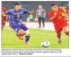 Local Sports Local Sports Myanmar men’s team advances to Sepak Takraw semifinal; Myanmar archers leave their events Sport 03/10/23 Deputy Sport Minister enjoys Myanmar team matches in Asian Games Sport 02/10/23 Asian Games Men’s Football: Myanmar eliminated from Round of 16 Sport 29/09/23 Myanmar competes in martial arts competition at Asian Games Sport 27/09/23 Myanmar U-24 Football Team receives cash awards in recognition of advancing to second stage at XIX Asian Games Sport 26/09/23 Shan United to take on Australian Club MacArthur today Sport 21/09/23 Myanmar beat Bangladesh 1-0 in Asian Games opener Sport 20/09/23 Myanmar rowing team set to compete in six events in XIX Asian Games Sport 19/09/23 Shan United to take on Australian Club in Yangon Sport 18/09/23 Myanmar lose South Korea in Asian U-23 Qualifiers Sport 13/09/23 Pagination First page « First Previous page ‹ Previous … Page 38 Page 39 Current page 40 Page 41 Page 42 … Next page Next › Last page Last » Most read news Bagan welcomes year-on-year rise in New Year visitor arrivals Local 3/Jan/2026 Eligible Myanmar children in Japan may apply for passports through Myanmar Embassy Local 3/Jan/2026 MoH reports over 86,000 nursing and midwifery graduates since 1962 Local 3/Jan/2026 Anatomy of the Poetry Body Feature 3/Jan/2026 Independence and the Cultural Heart of Myanmar Feature 3/Jan/2026
