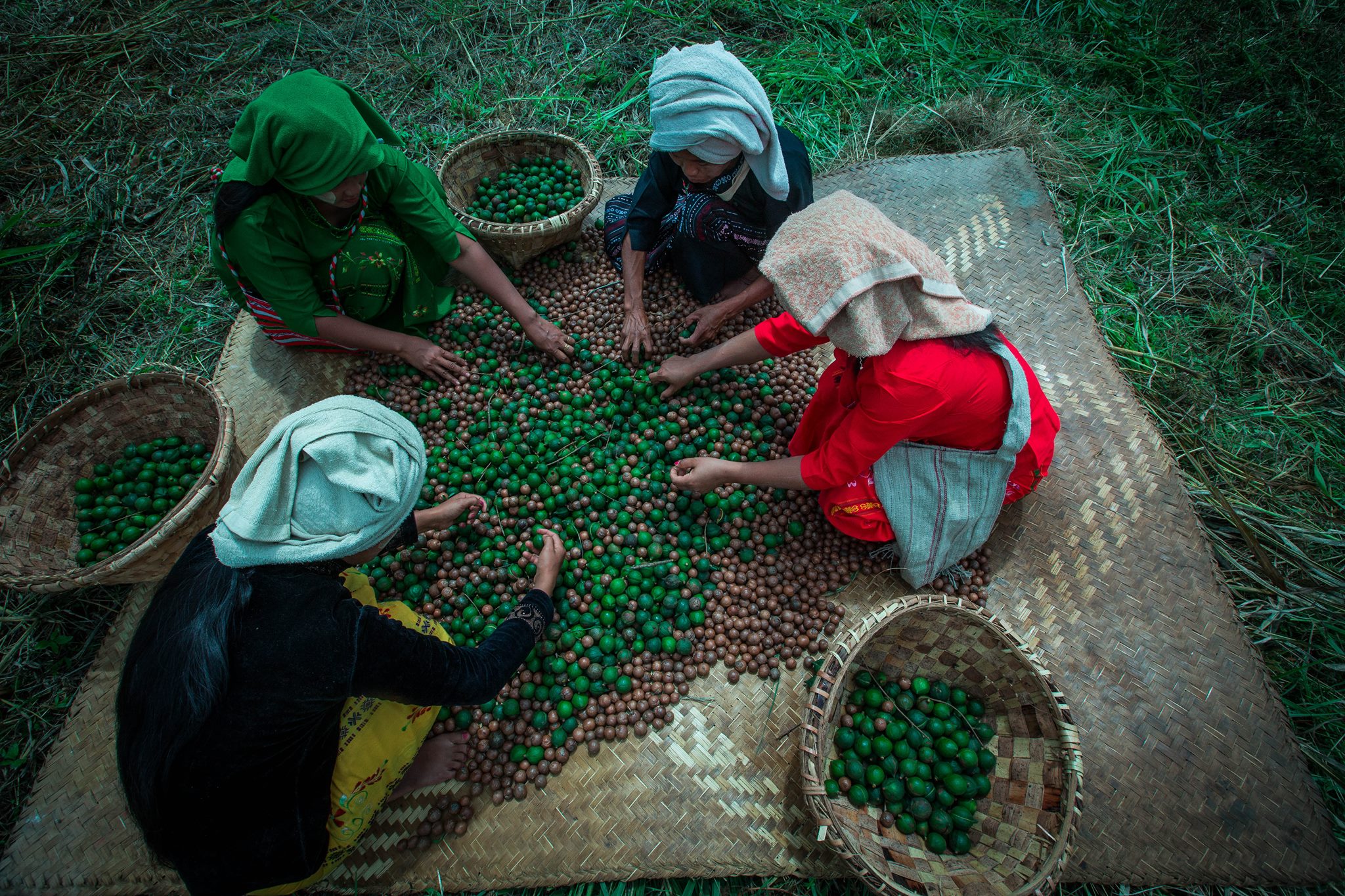 Macadamia nuts are harvested twice a year in Ywangan Township, Shan State, in spring and autumn.
